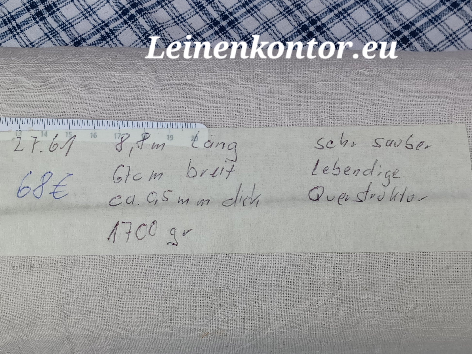 27.61 (8,8m x 0,67m x 0,5mm) Altes Bauernleinen Landhaus Leinenstoff Leinenballen
