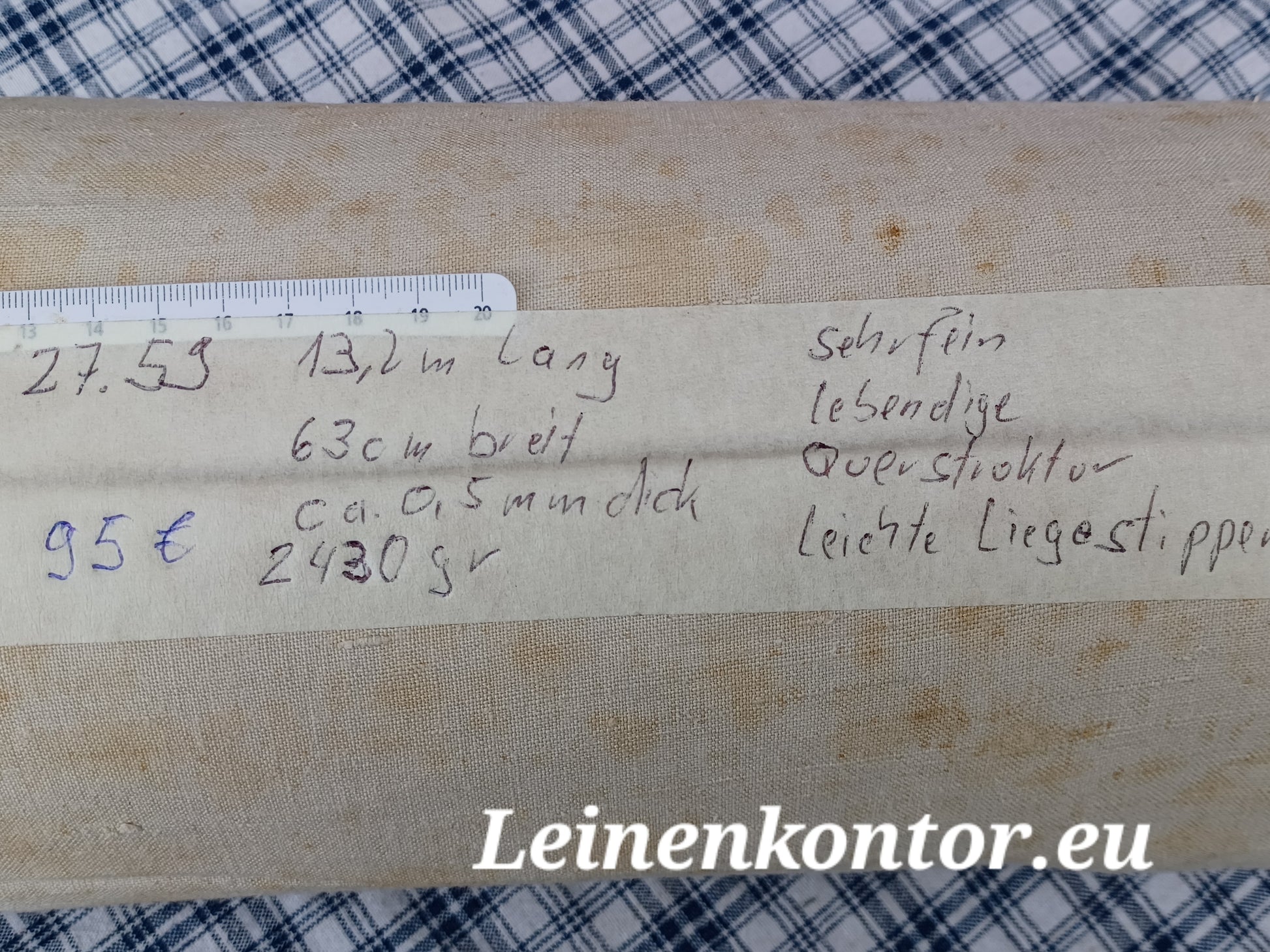 27.59 (13,2m x 0,63m x 0,5mm) Altes Bauernleinen Landhaus Leinenstoff Leinenballen